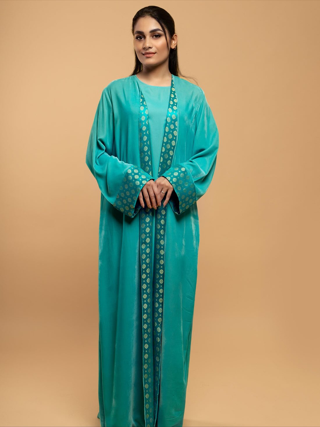 GREEN FLORAL EMBROIDERY ABAYA | VELORA